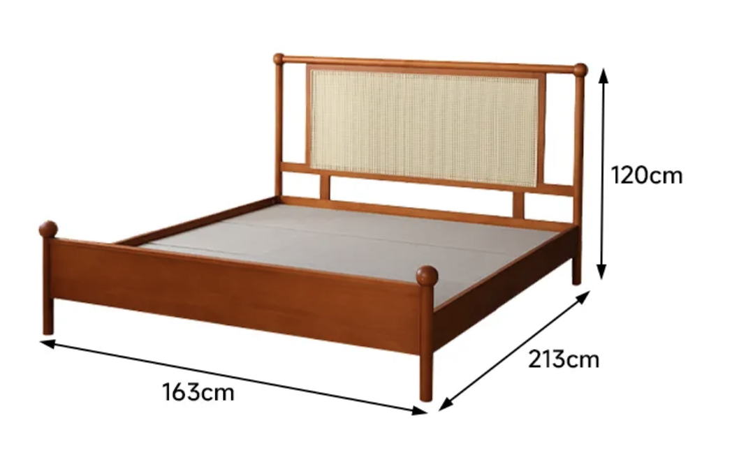 ツゲ材 レトロモダンラタン調ヘッドボード木製ベッド